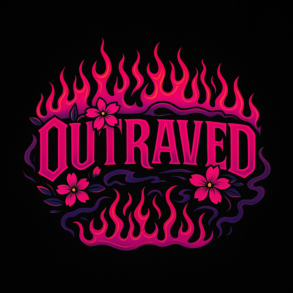 Sticker — Retro JDM Car “Outraved” Neon Flames & Cherry Blossoms -